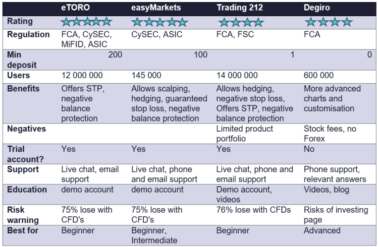 If you’re just starting out we recommend eToro and easyMarkets for their easy to use interfaces and fee -ree trading!