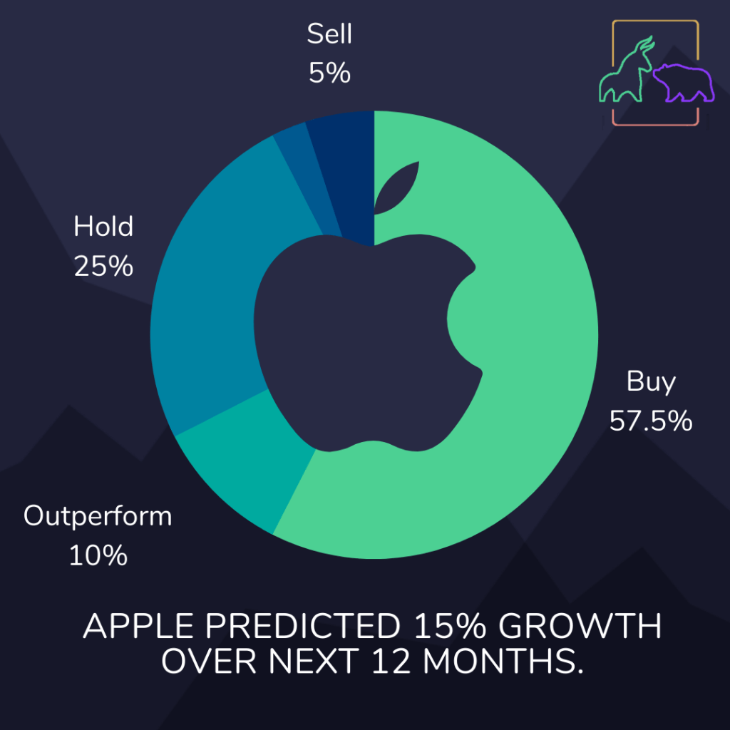 36 analysts, surveyed by CNN Money, predict the median price target for Apple stock at $133 over the next year, representing 15% growth from its previous closing price of $115.