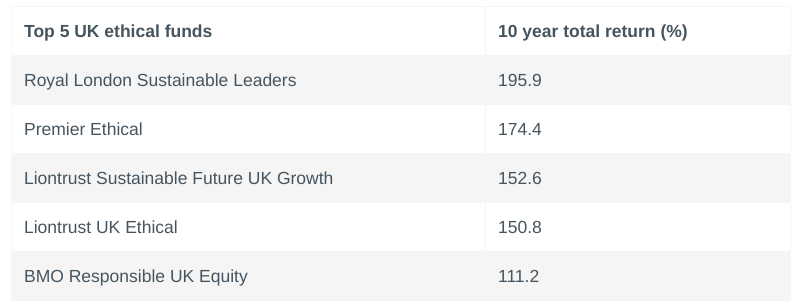 Royal London’s Sustainable Leaders fund was the top performing UK ethical fund over the past 10 years giving an almost 200% return, according to AJ Bell.