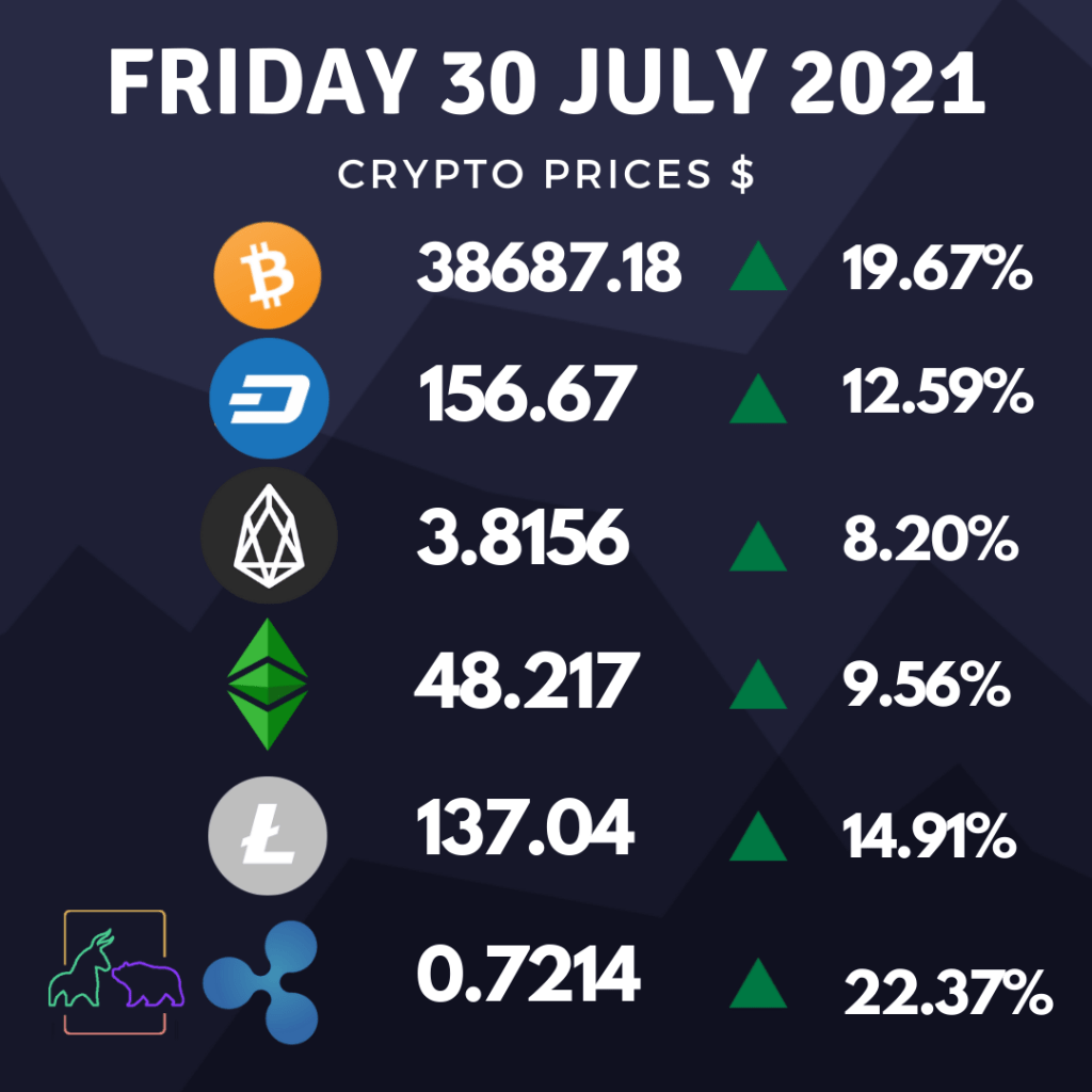 Fantastic news for all you crypto buyers, all the current crytpocurrencies currently on our app are on the rise, all with a healthy increase percentage. Bitcoin jumped up $400 with Litecoin up $15. Both Ripple and Ethereum both rose slighty at $0.29 and $0.15 respectively.